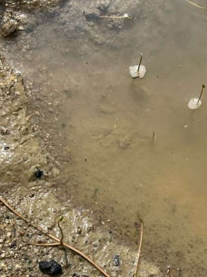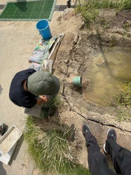 トンボが産卵する姿がたくさん見られたビオトープの池と田んぼにたくさんのヤゴの幼生を見つけることができました。