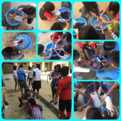 こんなに汚れている体操服を洗うのはとても大変そうでした(*^_^*)必死でもみ洗いしていました。☆☆☆