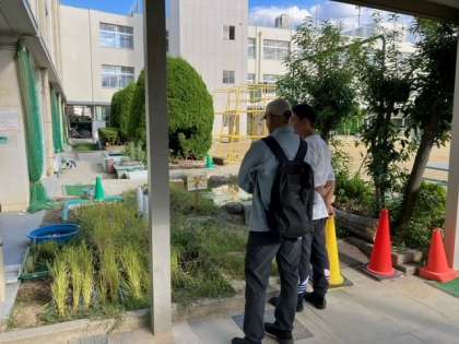 今日は、『全国学校・園庭 ビオトープコンクール2023』の審査に日本生態系協会より来ていただきました。学校での活用の様子や実際のビオトープなどを見ていただきました。結果は年内にわかる予定です。