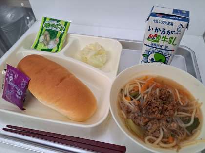 野菜の入った汁めんに、肉みそをのせていただきます。