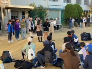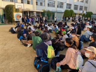 6年生は今日から一泊二日で三重方面へ修学旅行にいきます。朝は出発式を行いました。