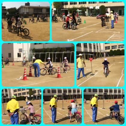 いざ乗って走らせてみると、停止、確認すべき場所で停止、確認せずそのまま進んでしまう児童も多くいました・・・この時後ろから車が来てたらひかれてしまっているよ・・・と指導して頂きました!!!
