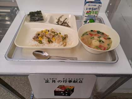 花かつおで出汁をとり、白みそを多く使った関西風のぞう煮です。白玉もちや鶏肉、さといも、だいこん、みつば、なにわの伝統野菜のきんときにんじんが入っています。