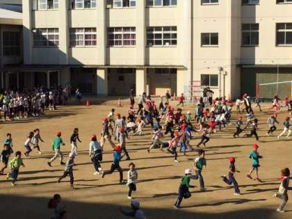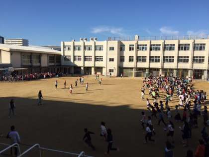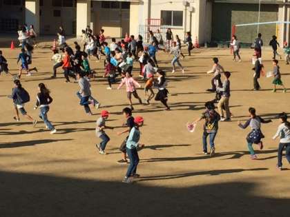 今日は2・4・6年生の集会でした。運動場の真ん中で待ち構える“おに”担当の集会委員の子どもたち。その“おに”にタッチされないように他の子どもたちは東西に走り抜けます。集会が終わって廊下で出会った2年生が「校長先生、ぼくおにに一回もタッチされへんかってん。体ひねってタッチされんようにしてん。」と嬉しそうに話してくれました。この後2年生は元気に遠足に出かけました。