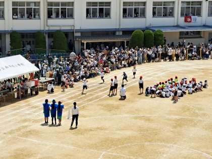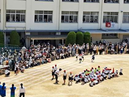 今年は5年振りに赤組と白組の得点競争があるので、走る方も応援する方にも熱が入ります。