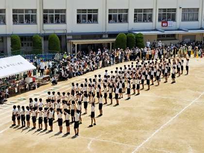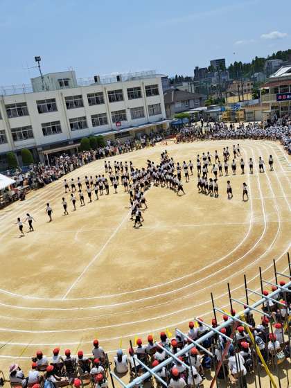 小学校最後の運動会、プログラムの最後を飾る団体行動とフラッグの演技。自信を持った力強い感動の演技でした。