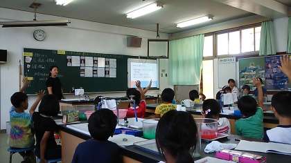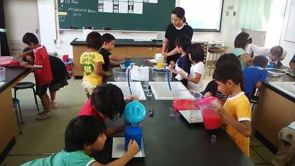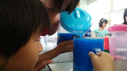 今日は、2年が『水のかさをはかろう』の研究授業をしました。