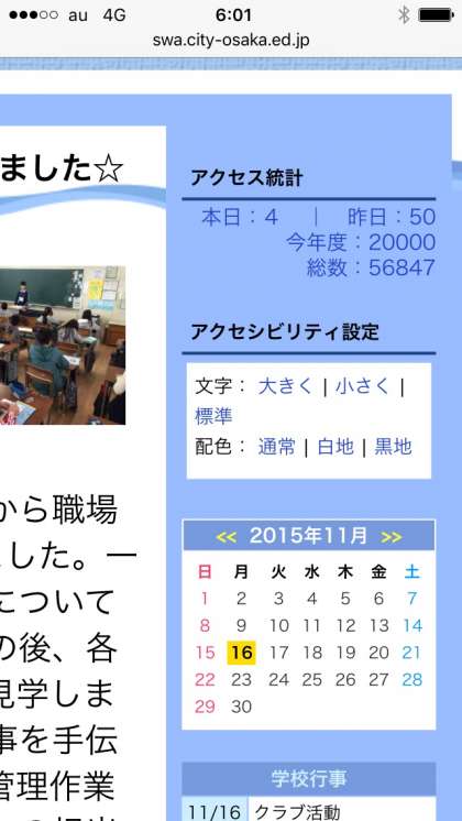 11月15日(日)本校ホームページの今年度のアクセス数が20,000回を突破しました。たくさんの方々が本校教育に関心を持っていただき、見守ってくださっていることに感謝いたします。これからも、学校の様子、子どもたちの活動の様子を情報発信していきますので引き続き毎日ご覧いただきますようよろしくお願いいたします。