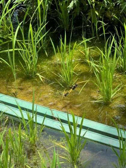 田植えも終わり暖かくなってきたビオトープには、トンボがたくさん飛来しています。
