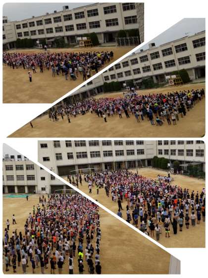 今日は、運動場で児童朝会が行われました。