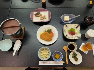 お刺身や焼き魚、お鍋など 豪華な夕食をいただきます。