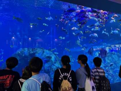 大水槽の色とりどりの魚に出迎えられて、歓声を上げていました。