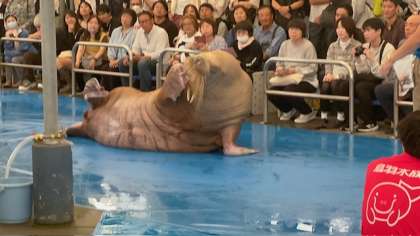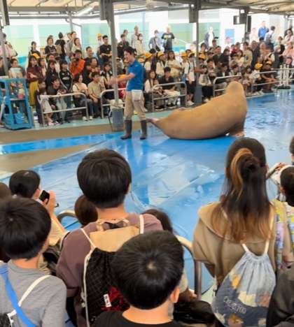 セイウチの生態や餌の食べ方など、いろいろなことが学べるショーでした。