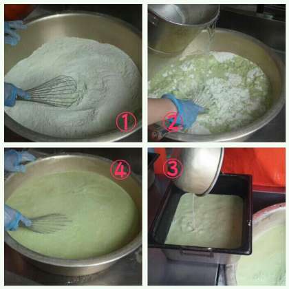 1、上新粉・抹茶・砂糖を混ぜ合わせる。