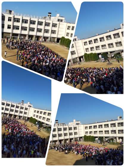 今日の児童朝会は、運動場で行われました。