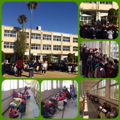 まずは地震が発生し、みんな机の下に入りました。揺れがおさまってから運動場に整列し、みんなの安全を確認しました。その後、津波警報が発令されたと想定し、三階に避難しました。