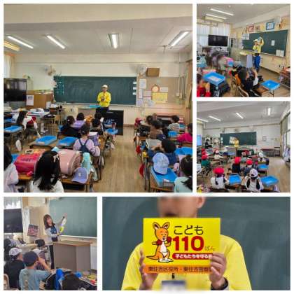 5時間目に、1年生の教室に東住吉区ラビット隊の方が来てくださり、ラビット隊の紹介や登下校時に気を付けることを話してくださいました。