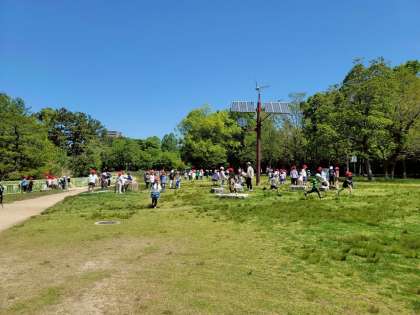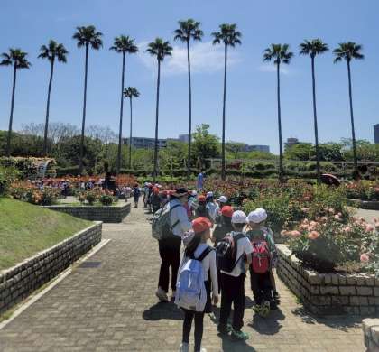 5月8日に春の遠足で長居公園の植物園に行きました。バラやネモフィラなどたくさんのお花を観察することができました。作ってもらったお弁当を、嬉しそうに見せ合いながら食べている姿が可愛かったです。