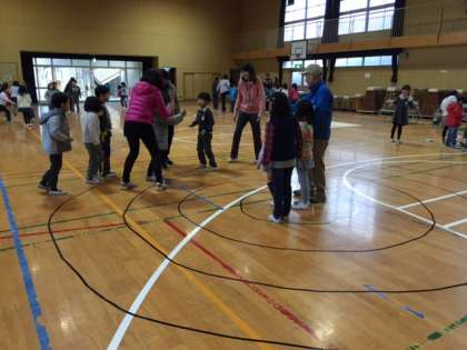 多目的室では、「おてだま」「あやとり」「だるまおとし」「おりがみ」のコーナーをつくっていただきました。