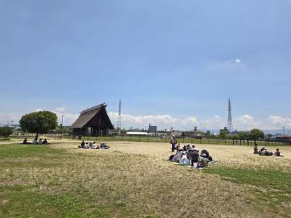 博物館のすぐ側の池上曽根史跡公園でお弁当を食べました。