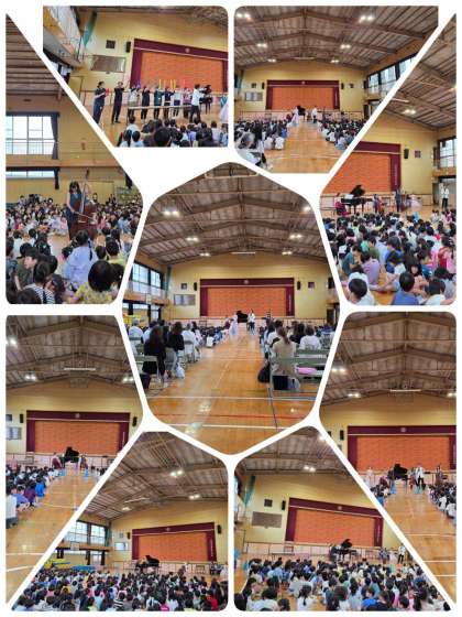 みんなで歌うところでは、楽しい歌声が体育館に響きました。