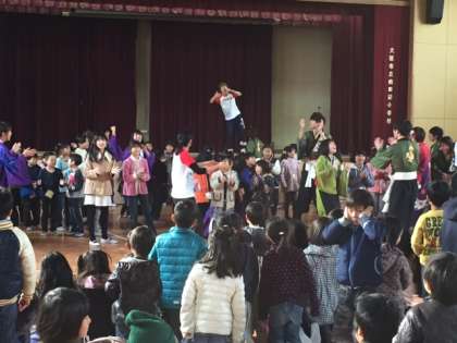 後半は「こいや祭り」実行委員会の方々のご協力で、「大阪教育大学」「大阪市立大学」「四天王寺大学」の学生さんたちと、南田辺小学校の子どもたちが「エビバディこいや」「南中ソーラン」を一緒に踊らせてもらいました。大盛り上がりの中、南小冬フェスが無事終わりました。