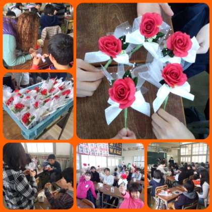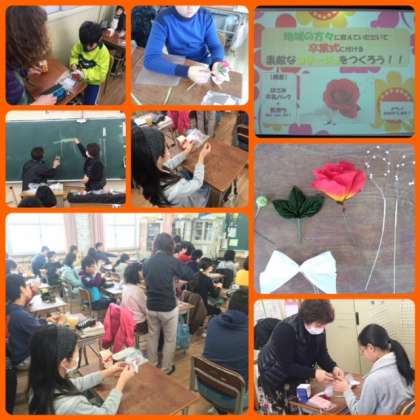 生涯学習の方々がゲストティーチャーとして6年生にコサージュ作りを教えてくれました☆☆☆