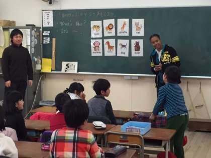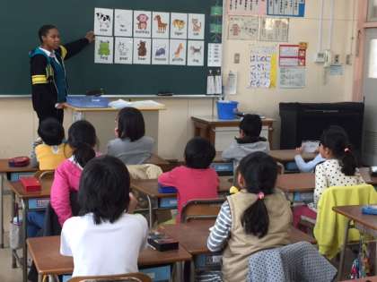C-NETとして毎週木曜日に5・6年生の英語活動の支援をしてくださっているTAMARA先生。今週は田辺中学校がテストで英語の授業がなかったため、24日(水)は1年生と4年生、今日は2年生の英語活動の支援に来てくださいました。今日は「動物の言い方やなき声をしろう」というテーマで“What's this?”“It's 〜”のフレーズに慣れました。