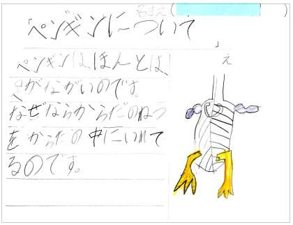 1年生が『ペンギンについて』という自主学習をしてきました。詳しくは→こちらをご覧ください
