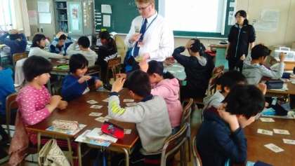 昨年度までC−NETで来てくださっていたTamara先生に代わり、本年度からはMason Losh(メイソン ロッシュ)先生が主に5・6年生の英語活動の支援をしてくださいます。シカゴ出身、すき焼き大好き、ボードゲーム(すごろく)やスノーボードがお得意だそうです。日本にはもう7年間いらっしゃるそうです。今日は6年生との英語活動です。自己紹介の後、各月の名称を学びました。とてもパワフルな先生です。子どもたちも積極的に話しかけ、英語に親しんでほしいと思います。