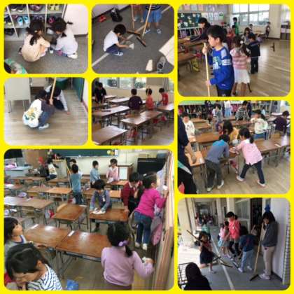 今日は6年生にこうするんだよ・・・と教えてもらいながら一緒に掃除をしました(*^_^*)