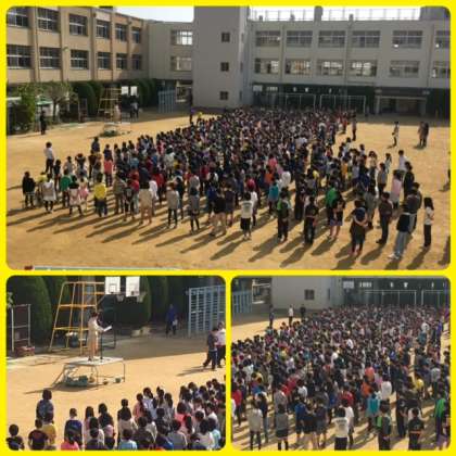 みなさんのお家の人が仕事をしておられるように、小学生にも仕事があります。さて、何でしょう?と尋ねると、「勉強」という声が返ってきました。勉強するとは、今までできなかったことをできるようにすることを言います。算数の計算ができるようになる。教えてもらった新しい漢字を何度も練習して書けるようになる。体育で逆上がりや二重跳びができるようになるなど、今までできなかったことができるようになった。つまり、頑張って勉強した結果です。できなかったことができるようになるというのはとてもうれしいことですね。見ている先生たちもとてもうれしくなります。友だちとの関係でも勉強していますか?今までできなかったことができるようになったということがありますか?たとえば、今まであまり仲が良くなかった友だちとなかよくなった。友だちに親切にできるようになったなどです。思い通りにいかなかったら、泣いたり、怒ったりする。友達を仲間外れにしたり、物を隠したりしている人はいませんか?そんな人は心の勉強が足りないのかもしれません。今、前にいる人、横にいる人、後ろにいる人たちに優しくしていますか?もちろん国語や算数の勉強は大切です。でも、校長先生は心の勉強の方がもっと大切だと思います。たくさん勉強して、できることを増やしましょう。