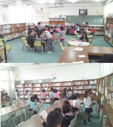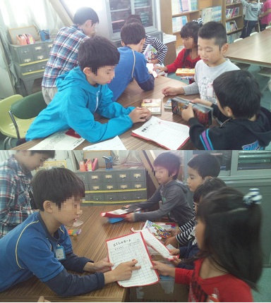 お昼休みと同時にたくさんの1・2年生の子どもたちが嬉しそうに図書室へやってきました。