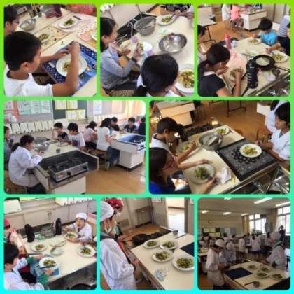 班ごとに切り方、炒め具合などを工夫して、様々な野菜炒めが出来上がりました(*^_^*)