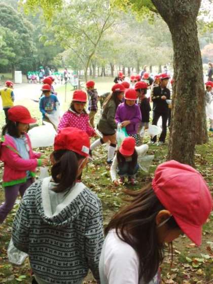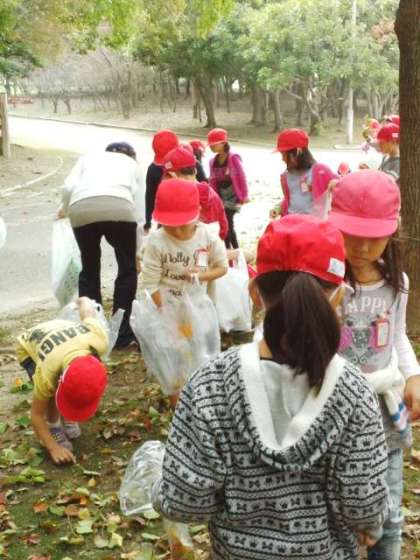 みんな楽しそうに、どんぐりや落ち葉を探していました。