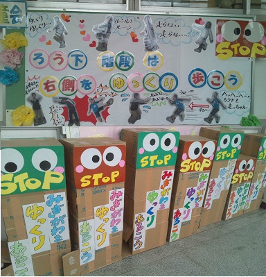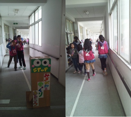 運営委員会の児童達が「廊下見守り隊」を結成し、休み時間パトロールしてくれています。