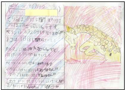 昨日、2年生の子どもが自主学習で「どうぶつたちのねるじかん」について調べてきました。「自分で課題を見つけ」「解決の方法を考え」「調べ」「まとめる」という力は社会に出てからも大いに役立つ力です。身の回りの出来事を「ふしぎだな?」「どうなってるのかな?」という目で見つめ、広い視野と、豊富な知識を持った人になってほしいと思います。詳しくは→こちらをクリックしてご覧ください。