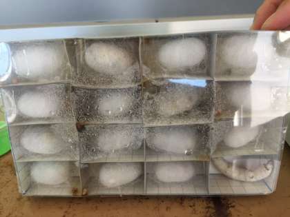 先日からお伝えしています蚕が、どんどん成長し、すべて繭になりました。子どもたちからは「さびしくなった」「楽しみがなくなった」という感想が寄せられているそうです。この後どうするのかは学年で検討中のようです。