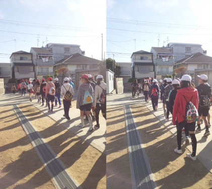 長居競技場で行われるスポーツ交歓会へ9時に学校を出発しました。