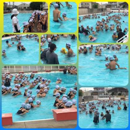 6年生が1年生をおんぶしてプールを歩いたり、手をもってあげてバタ足をさせてあげたり、宝探しをしたり・・・1年生も6年生もとても楽しそうに活動していました♪♪♪