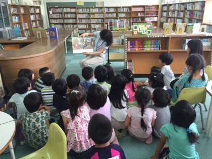 子どもたちがもっと読書に親しめるように、開館回数を増やしたり、読書環境を整備したりするために大阪市教育委員会は昨年度10月より、「学校図書館活用推進事業」を実施しています。それに伴い、大阪市立の全小中学校に「学校図書館補助員」が配置されています。本校には毎週木曜日に来てくださり、図書館の環境整備や読み聞かせを行ってくださっています。昨日は、1年生が「かさどろぼう」という絵本を読み聞かせてもらいました。
