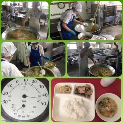 このサウナのような中、給食調理員さん達は子ども達のため、安全で美味しい給食作りを頑張ってくれています☆☆☆