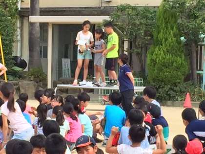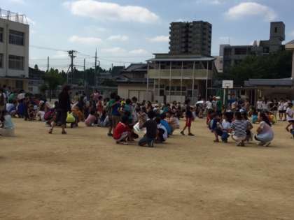 昨日は2・4・6年生の児童集会がありました。いつものように縦割り班で集合。集会委員の子どもたちがたたくタンバリンの音を集中して数えます。「1、2、3、4」タンバリンの音が鳴りやんだら、その数の人が集まって、友だちとグループを作り座ります。残念ながら人数が足りないグループもできてしまいます。違う学級、違う学年の人たちと友だちになる絶好のチャンスです。