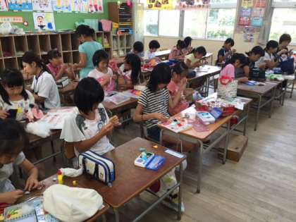 昨日11日は本年度5回目、1学期最後のクラブ活動でした。ゲームクラブでは、オセロゲームを楽しんでいました。因みにオセロゲームは今から約70年前、戦後間もないときに「焼野原でも遊べるものを」と日本の高校生が牛乳瓶の蓋を貼り合わせ片面を黒く塗りつぶし、「はさんだら裏返す」と言うルールで考案したものだそうです。この歴史は、また、子どもたちに話そうと思っています。科学クラブは薬包紙に鉄粉を包んで線香花火を作り、パチパチっと輝く火の粉を観察していました。手芸クラブではフエルトで飾りを作ったり、ビーズで缶の蓋をデコレーションしたりと、それぞれ自分で持ってきた材料で、思い思いの作品を作っていました。