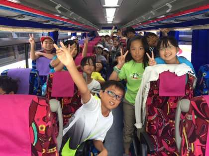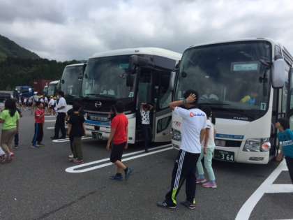 まほろばでのトイレ休憩を終え、鉢高原に向け、出発です。みんな元気です。