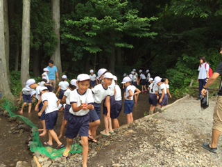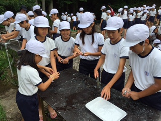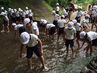 いよいよ魚つかみがスタート!まずは3組です。第一声は、キャー冷たい!でした。