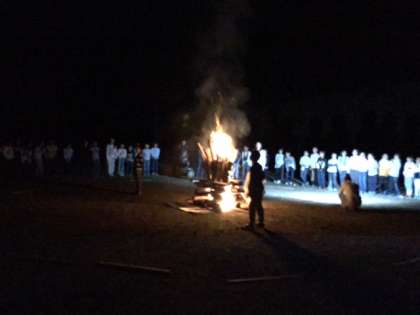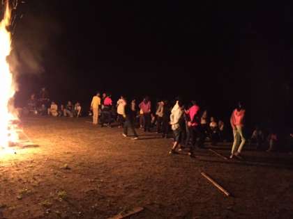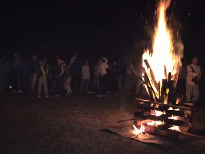 ファイヤーを囲み、各クラスが、スタンツを披露します。