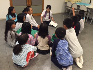 キャンプファイヤーの後は、入浴でした。その後みんなは、寝る支度、活動班、生活班の班長会議をし、今日の反省と、明日の活動の確認をしました。1日目が終わりました。