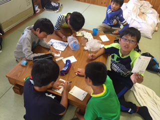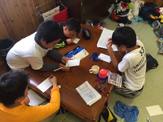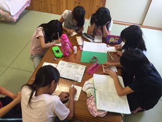 スイカの後は家族、親戚への葉書き作り。表書きに四苦八苦している子どももいました。この二日間の思い出を書いています。葉書の到着より、子どもたちの帰宅の方が早いと思いますが、お楽しみに。