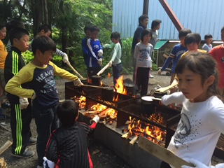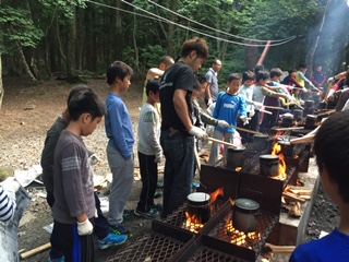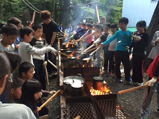 「飯盒の蓋にまきを当てて振動があるうちはご飯はまだ炊けてません」と教えて頂いていたので、どの班もその教えを守っていました。どの班もおいしいカレーができました。